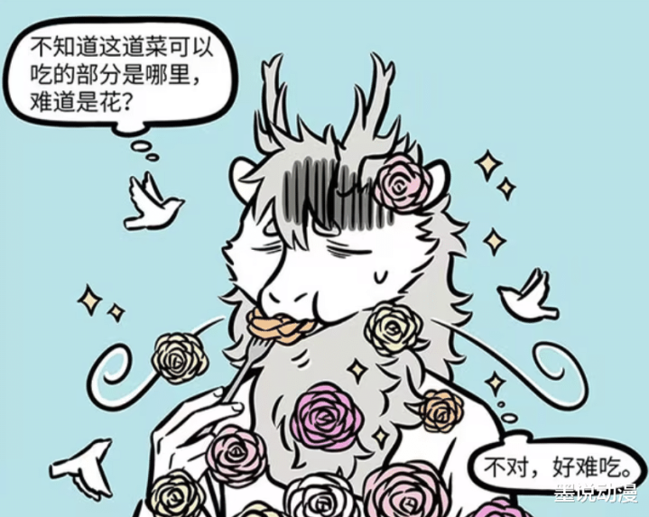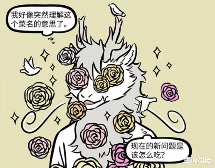 敖烈一霎相识,这全部“乱花渐欲迷东说念主眼”,这鲜花都一经将敖烈的眼睛迷住,还有一只小鸟停留在敖烈的龙角上。虽说菜和名字是都备莫得进出,但是要如何吃这说念菜才是最大的问题。