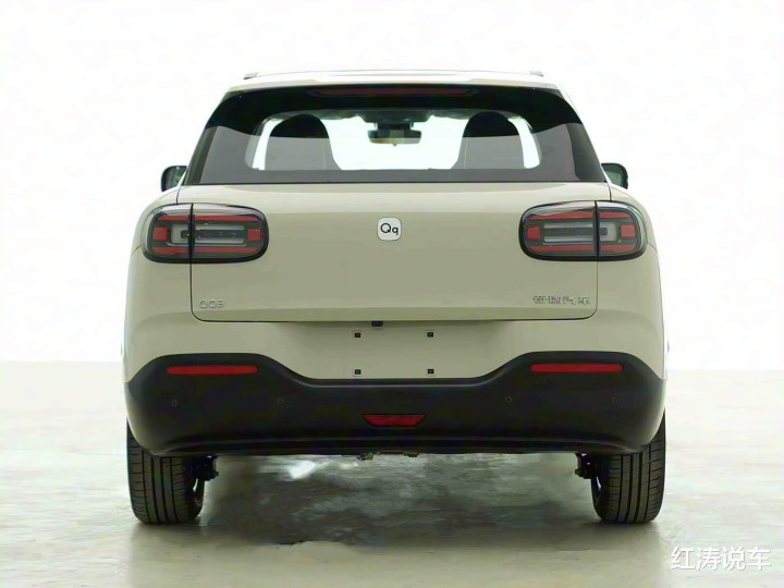 尾部是个有点小性感的肥臀,呈现出下宽上窄的造型,熏黑尾灯和前灯组的野心作念到呼应,何况也换成了“Qq”车标,而玄色后包围面积较大,进一步培育整车自由感。