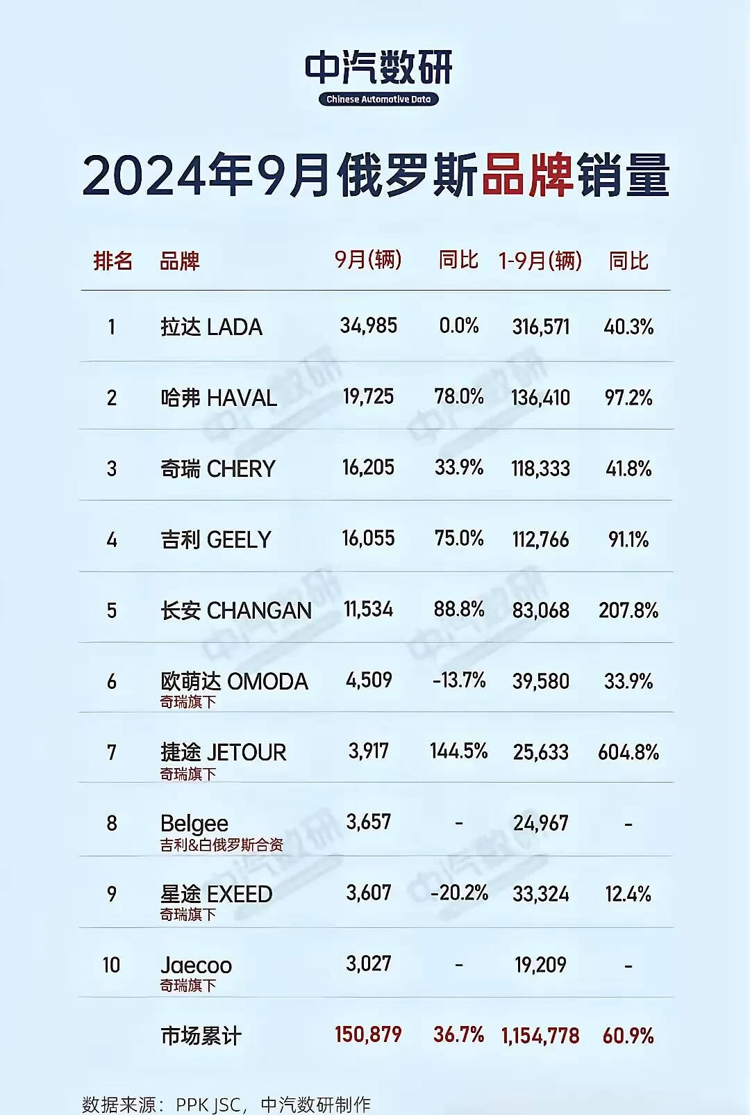 【俄罗斯依然被中国车企“占领”了】有小伙伴说,俄罗斯的商场依然被中国品牌车企占领的差未几了,只剩下等别称的拉达了。