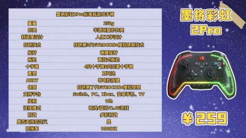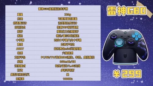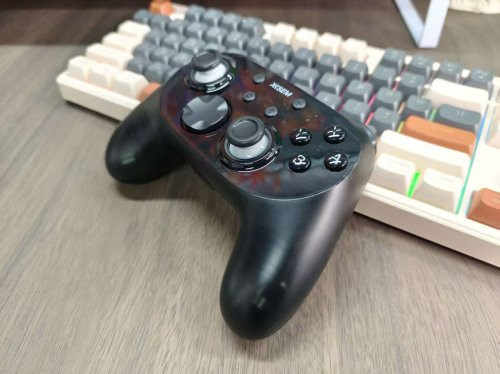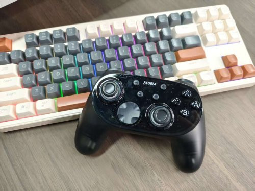 经典布局,手感实足,分量平衡,握持感奋。RGB充电底座兼收纳功能,可存放给与器与备用键帽,便于佩戴。摇杆和按键手感偏中性,连招与微操精确,可退换更动强度。营救PC、Switch、蓝牙及2.4G无线,多平台即插即用。实测射击和赛车游戏中,手感当然,操作反馈实时,永劫候游戏也不会疲顿,是中端玩家的实用之选。