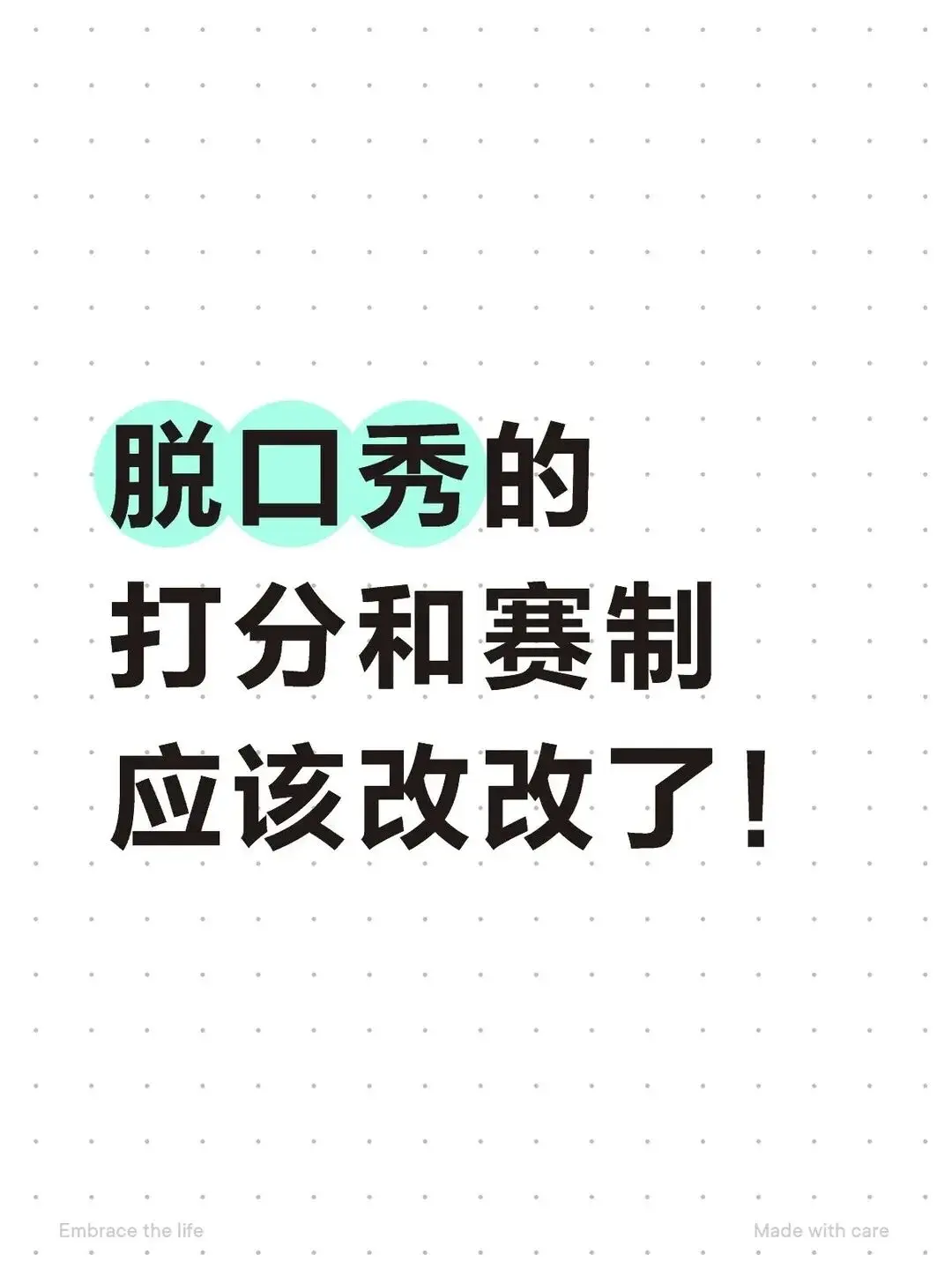 除了内容,赛制想象也成为不雅众盘问的焦点。