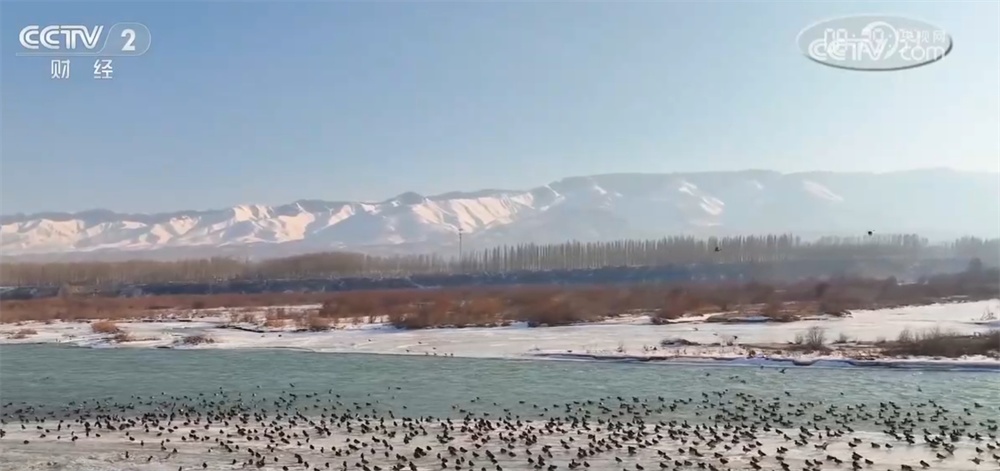 新疆天山春意渐浓 河流湿地候鸟起舞