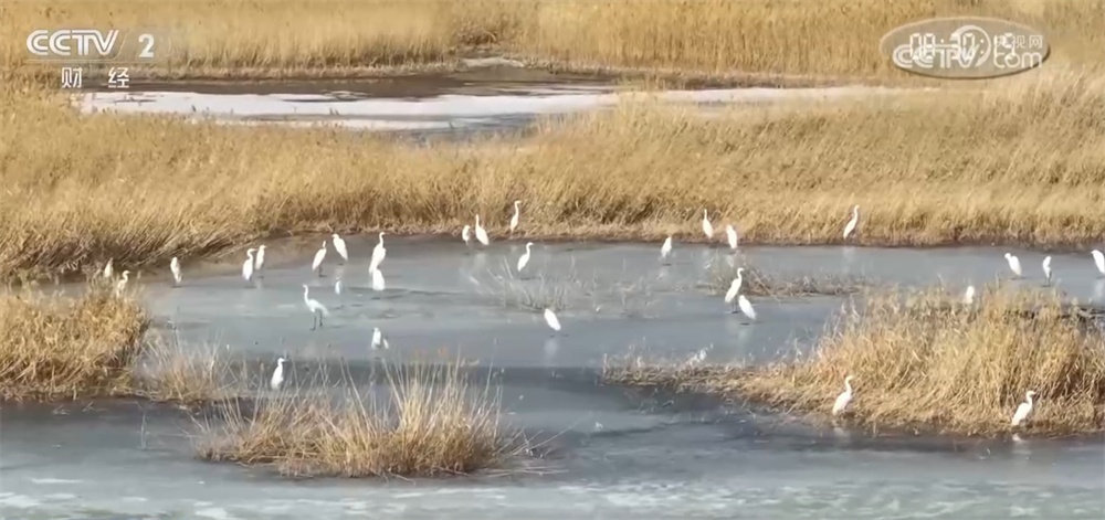 在克拉玛依市古海湿地生态公园,三十余只白鹭与苍鹭在芦苇荡中轻歌曼舞。白鹭、苍鹭一刹掠过冰面,一刹伫立在冰面上,时动时静,颠倒酷好酷好。