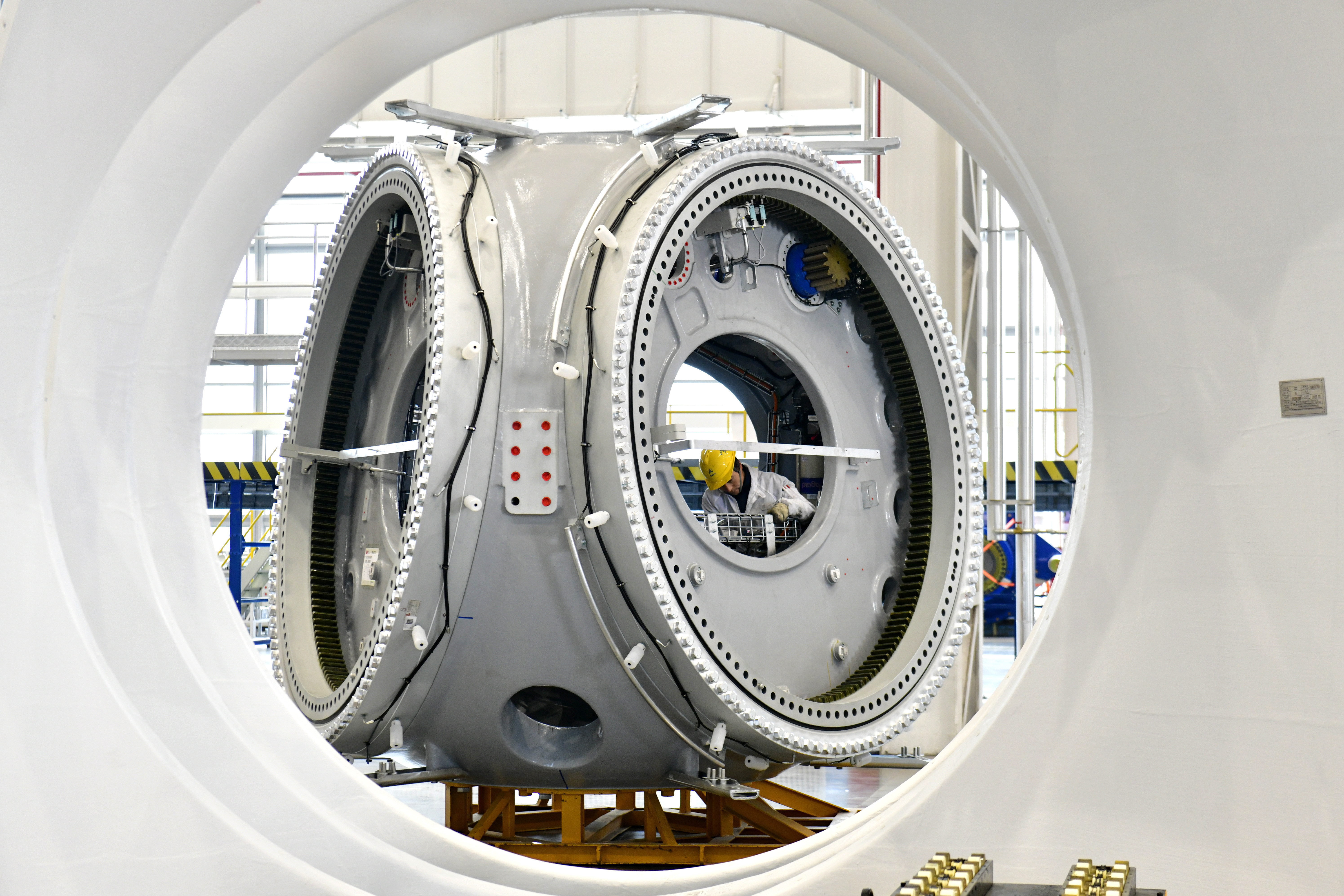 2月22日,在三一重能(日照)风电迷惑制造有限公司,使命主谈主员在风电迷惑分娩车间贫苦。新华社记者郭绪雷摄共赢出路之“新”,源于高水平绽放展现合营诚意。